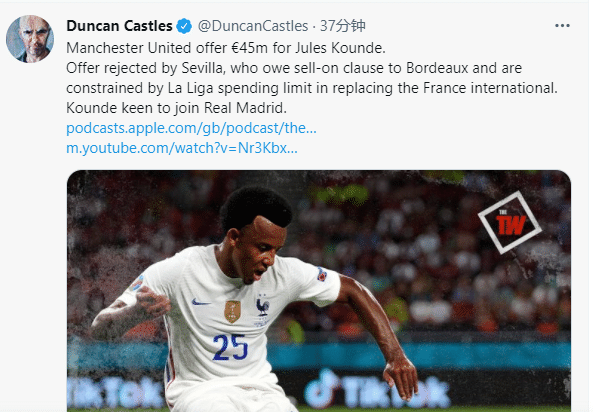 24直播网讯曼联今夏想签下一名中卫,孔德是目标之一,但他们的报价被塞维利亚拒绝,而法国后卫想加盟皇马。