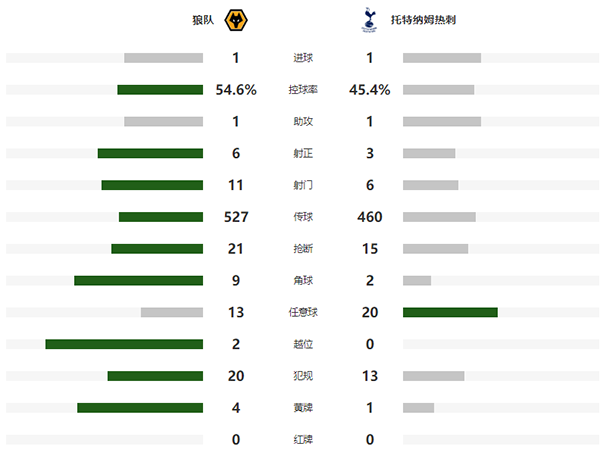 英超简报:热刺1-1狼队 恩东贝莱闪击赛斯救主
