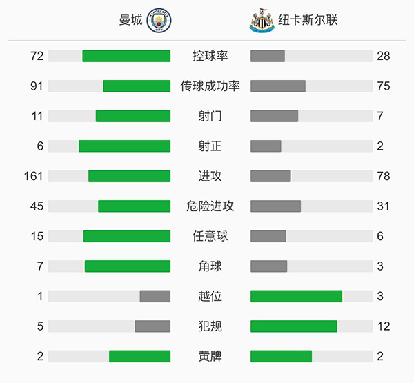 第14分钟,曼城首开记录!曼城连续传递配合,坎塞洛斜传给到禁区右侧,斯特林得球后把球停住扣一下,冷静横传门前,京多安伸脚抢点破门,曼城1-0纽卡斯尔。