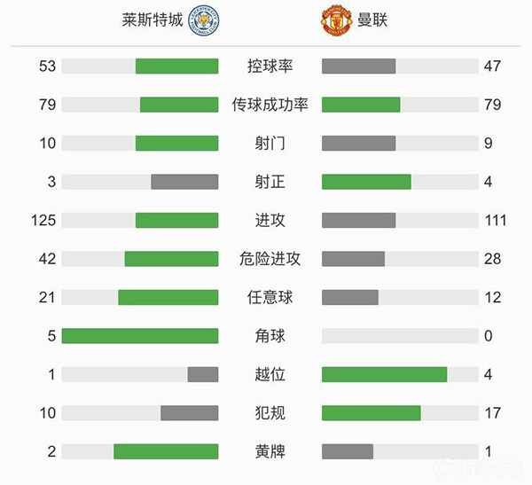 查看:莱斯特城vs曼联 全场录像技术统计:
