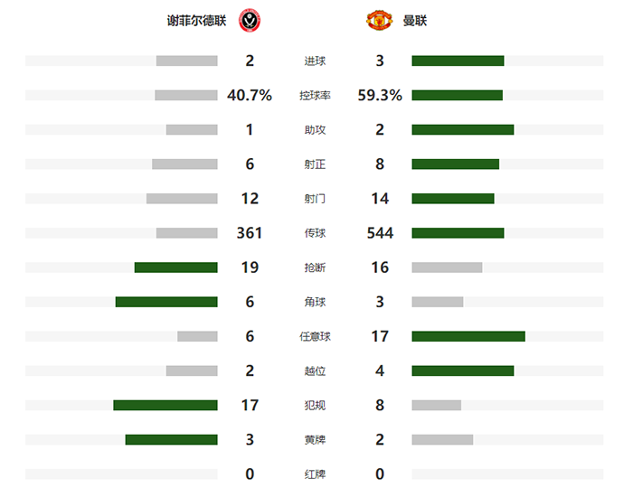 未上场替补:1-德赫亚、17-弗雷德、23-卢克-肖、21-丹尼尔-詹姆斯
