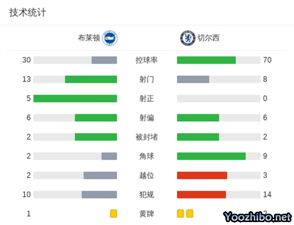 最终,切尔西客场0-3不敌布莱顿。