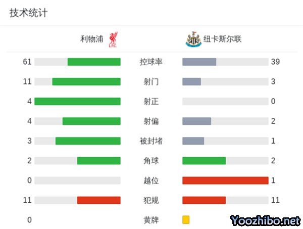 最终利物浦主场2-0战胜纽卡。
