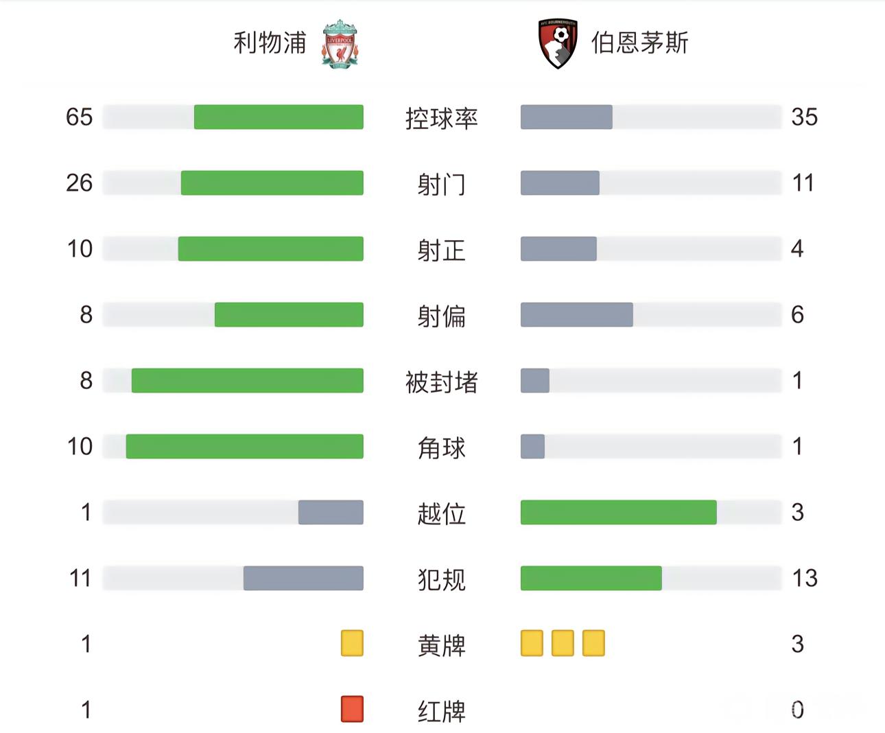 利物浦3-1伯恩茅斯 萨拉赫破门迪亚斯若塔建功麦卡染红