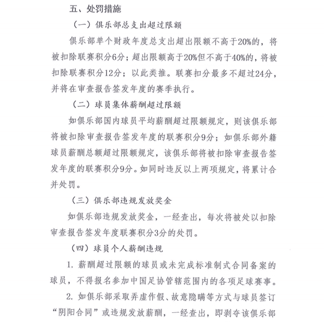 其次,如果球员和俱乐部签订“阴阳合同”,必将遭到史无前例的重罚。根据《关于发布2021-2023赛季中超联赛俱乐部财务约定指标的通知》的相关内容可得知,如果俱乐部违规发放奖金,与球员签订“阴阳合同”,俱乐部会被扣分、剥夺比赛成绩甚至是直接罚奖金,而球员则会遭到禁赛甚至是无法注册。