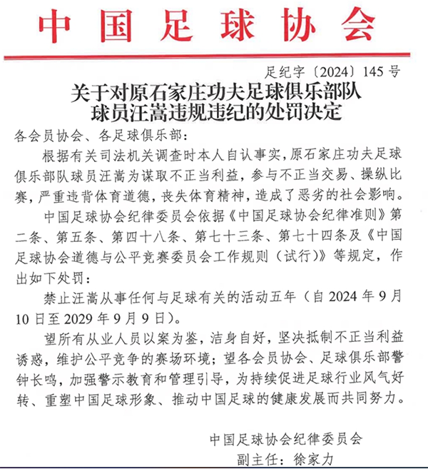 如今随着罚单的出炉,汪嵩的豪言被打脸了,根据调查时本人自认事实,汪嵩为谋取不正当利益,参与不正当交易、操纵比赛,严重违背体育道德,丧失体育精神,造成了恶劣的社会影响。而此前汪嵩还在更新自己的社交媒体,很显然,这个以自律和清廉自称的球员,被禁足5年,几乎等于提前退役。