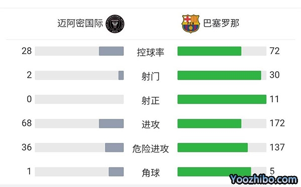 全场比赛结束,巴塞罗那6-0迈阿密国际。