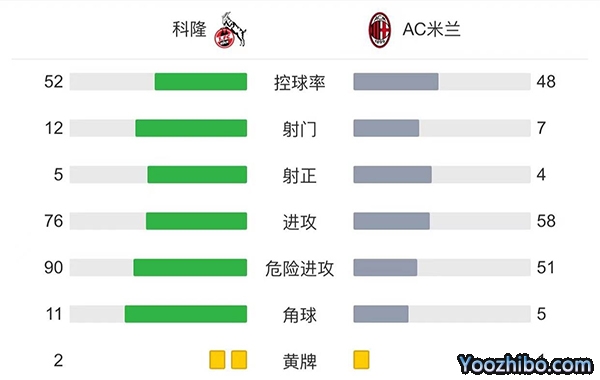 第16分钟,米兰取得领先,雷比奇发动反击,他随后接梅西亚斯横传巧妙脚后跟传球,吉鲁挑球过掉门将后打空门得手,米兰1-0领先科隆。