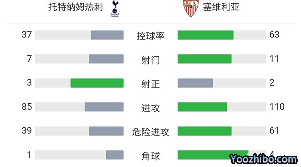 全场比赛结束,热刺1-1塞维利亚。