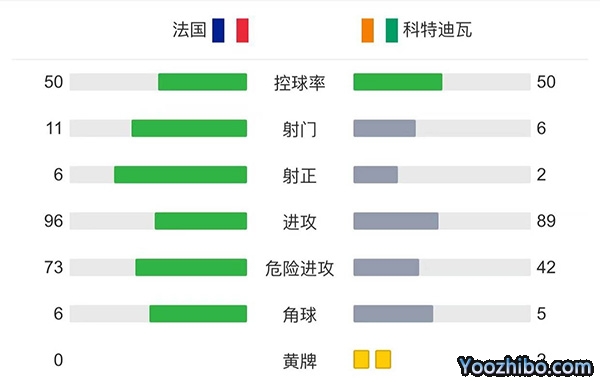 第19分钟,佩佩踩单车过掉防守后抽射近角得手,法国0-1科特迪瓦。