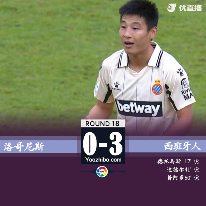 西班牙人(4-2-3-1):13-迭戈-洛佩斯/27-奥斯卡-希尔、15-大卫-洛佩斯(5-卡莱罗 71’)、6-尤易斯-洛佩斯、3-佩德罗萨(7-武磊 46’)/10-达德尔(26-洛萨诺 55’)、20-巴雷/33-梅拉梅德(22-巴尔加斯 82’)、14-梅伦多(17-迪达克 46’)、9-普阿多/11-德托马斯