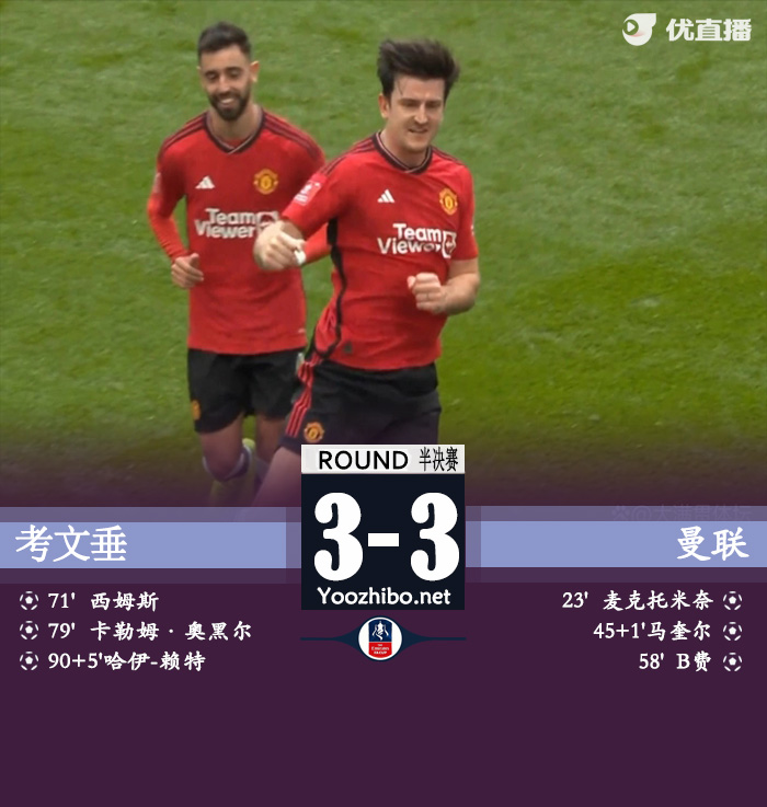 最终,曼联总比分7-5惊险淘汰考文垂。